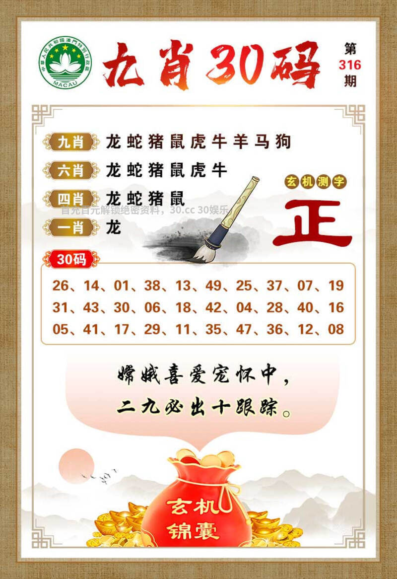 316期绝杀《羊猪兔》开:马24准
